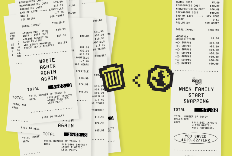A kid game experience to swap toys in your neighbourhood because the most sustainable toy is already in someone else’s trunk.