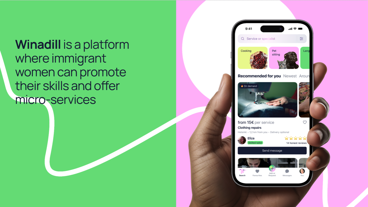 The Winadill Project is a digital platform connecting migrant women with local communities through freelance services such as baking, babysitting, photography, and more. Co-created through research and workshops, the platform fosters social connections, economic empowerment, and inclusion. Its design allows migrant women to contribute their skills, building both visibility and opportunity across diverse audiences.